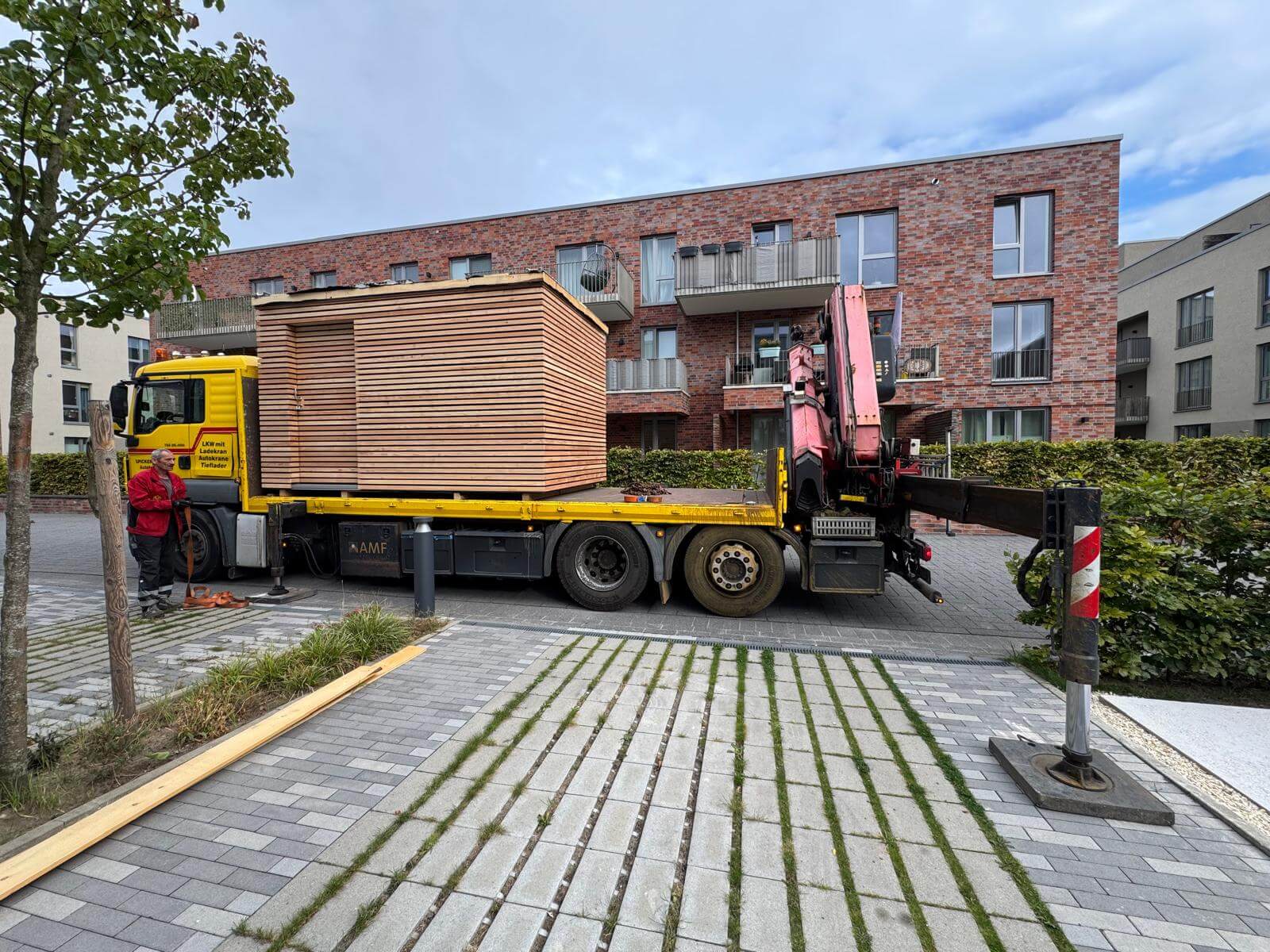 Together with a local freight forwarder, we delivered the house directly to the customer’s address in Hannover – quickly, safely and reliably.